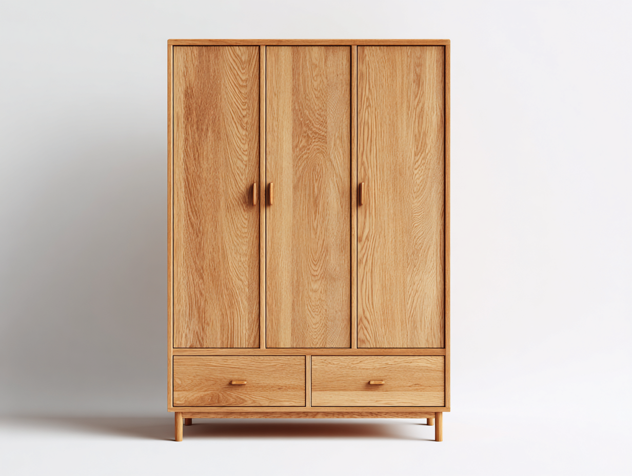 Kleiderschrank mit drei Türen Holz 152x60x200 cm Naturholz - Schlafzimmer - Klassisches Design mit Schubladen
