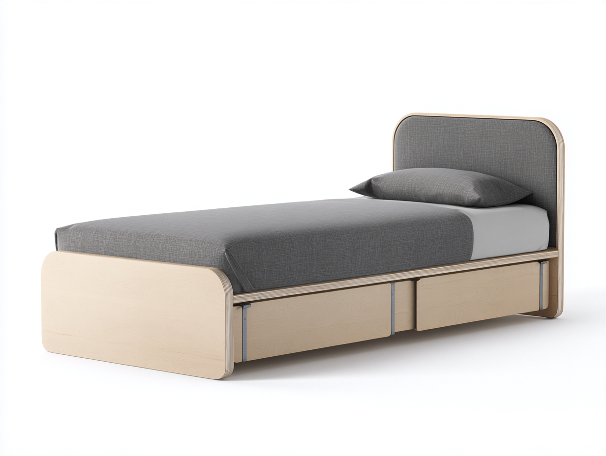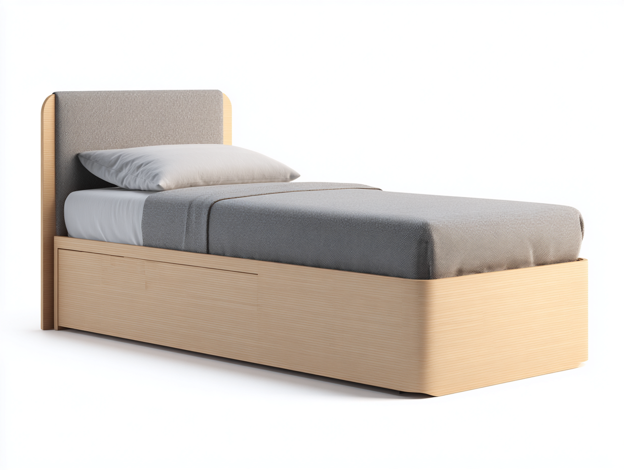 Einzelbett Massivholz mit Stoffkopfteil 205x105x120 cm - Naturfarbe - Klassisches Design mit Schubladen - Geeignet für Schlafzimmer