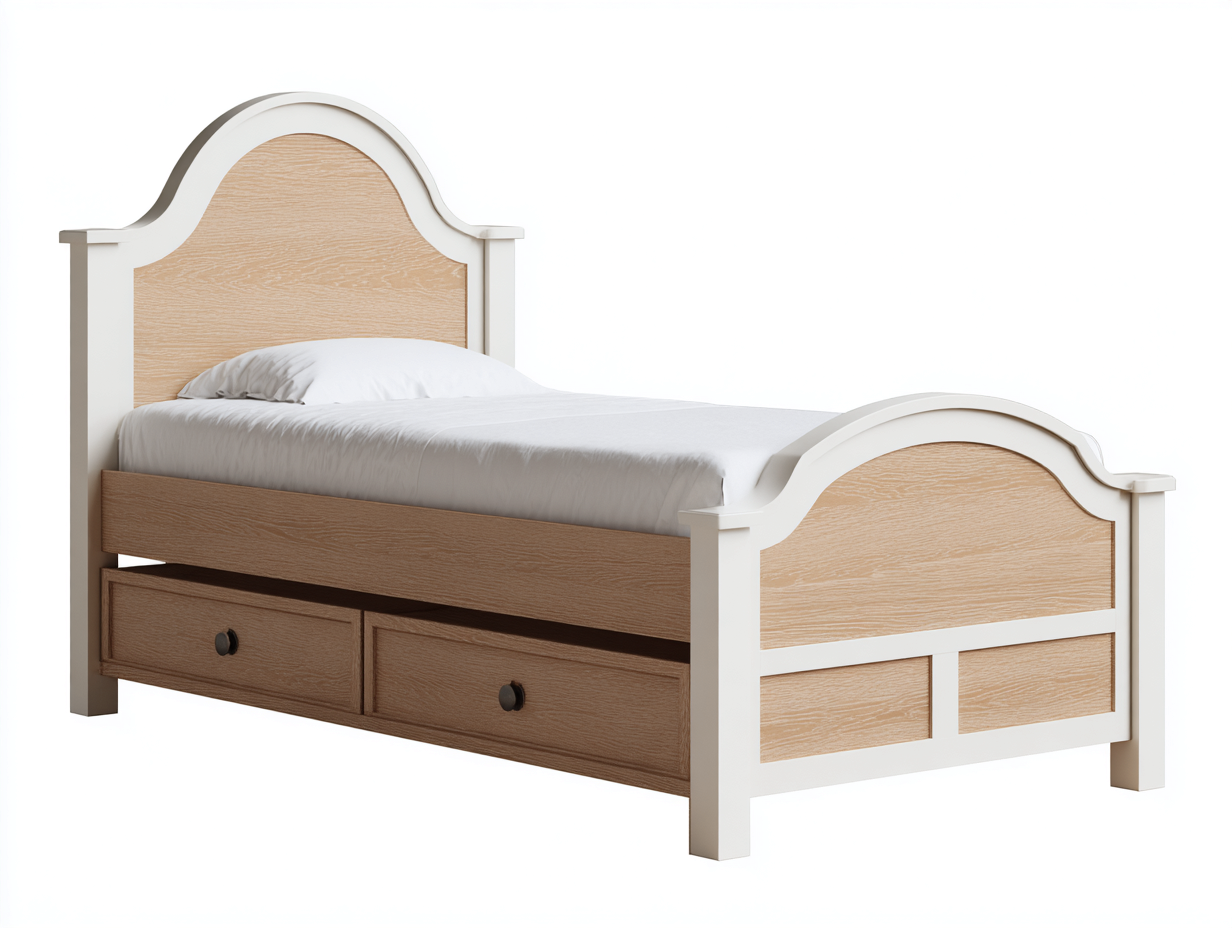 Einzelbett Holz mit Schubladen 200x100x105 cm - Naturholz - klassisches Design für Schlafzimmer