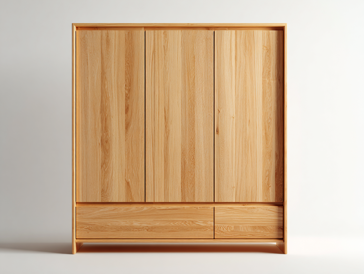 Kleiderschrank mit drei Türen Holz 150x60x200 cm Naturholz - Schlafzimmer - Klassisches Design mit Schubladen