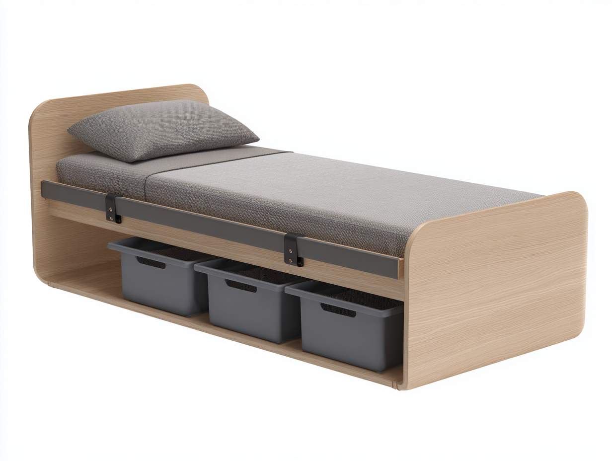 Einzelbett Holzrahmen 205x98x90 cm Naturholz Grau - Schlafzimmer - Modernes Design mit integriertem Stauraum