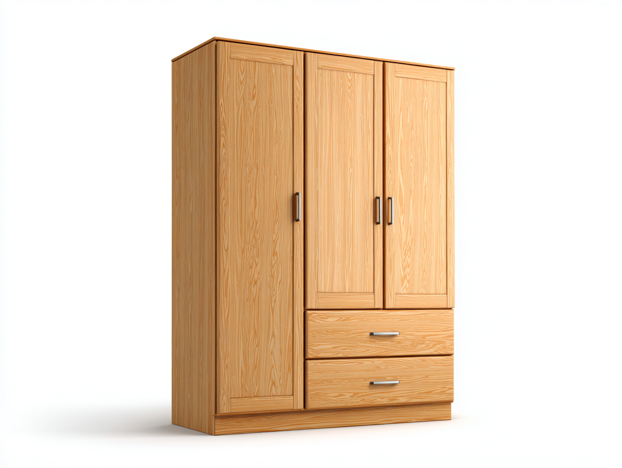 Kleiderschrank mit drei Türen Holz 145x60x195 cm Naturholz - Schlafzimmer - Klassisches Design mit Schubladen