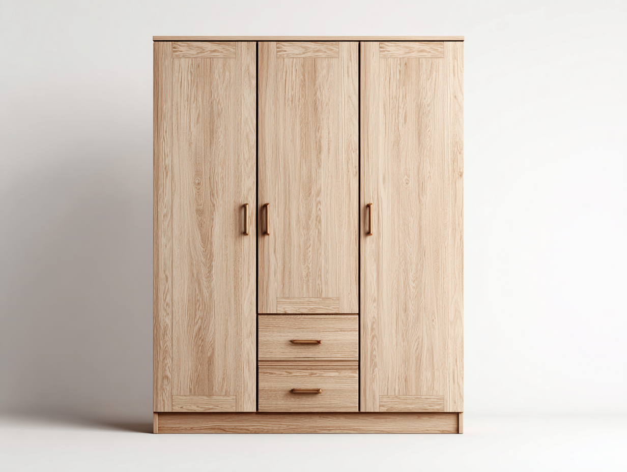 Kleiderschrank mit drei Türen Holz 150x60x200 cm Naturholz - Schlafzimmer - Klassisches Design mit Schubladen