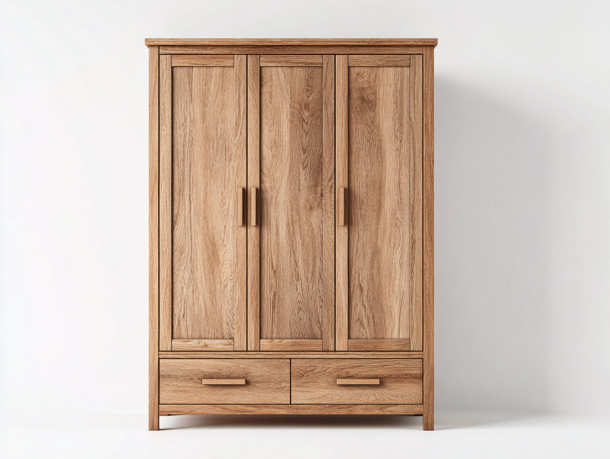 Kleiderschrank mit drei Türen Holz 152x60x200 cm Naturholz - Schlafzimmer - Klassisches Design mit Schubladen